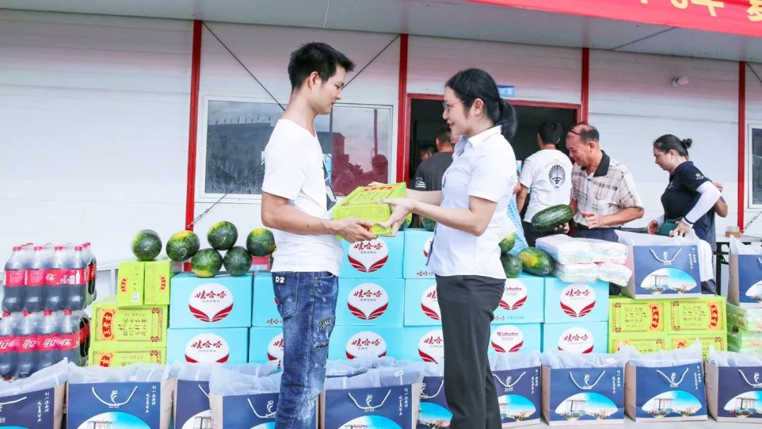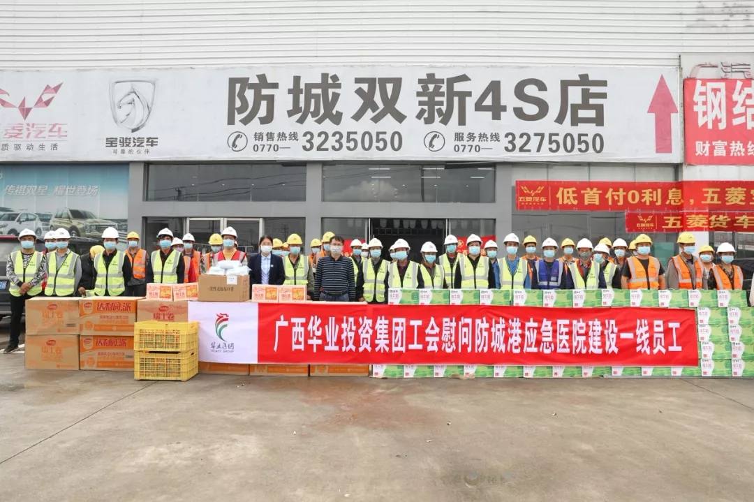 2020年2月15日,廣西華業(yè)投資集團(tuán)副總裁廖人興、工會主席鐘麗霞代表華業(yè)集團(tuán)在華業(yè)汽車城慰問連日來奮戰(zhàn)在防城港市第一人民醫(yī)院感染性疾病科應(yīng)急負(fù)壓病房項(xiàng)目建設(shè)一線的員工,為他們送去牛奶、水果等慰問品和防護(hù)用..