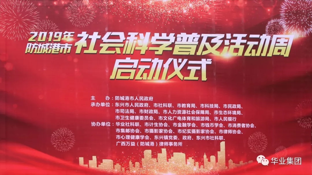2019年5月12日,防城港市人民政府在東興市新潤(rùn)發(fā)超市廣場(chǎng)組織開展了2019年防城港市社會(huì)科學(xué)普及活動(dòng)周啟動(dòng)儀式,廣西華業(yè)投資集團(tuán)有限公司社會(huì)科學(xué)界聯(lián)合會(huì)(簡(jiǎn)稱“華業(yè)社科聯(lián)”)作為協(xié)辦單位參加了本次活動(dòng)。