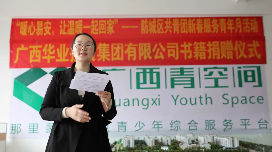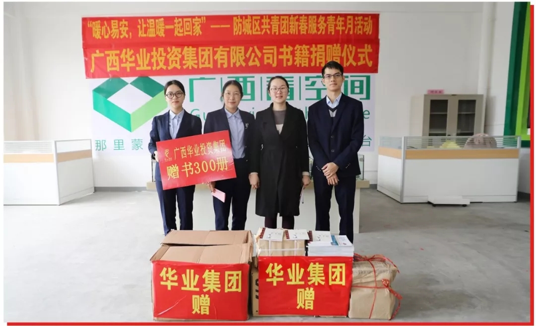 2020年1月15日,華業(yè)集團(tuán)到防城區(qū)水營(yíng)街道那里蒙易地扶貧搬遷安置點(diǎn)開展“暖心易安,讓溫暖一起回家”主題便民利民惠民服務(wù)活動(dòng)?;顒?dòng)由共青團(tuán)防城區(qū)委員會(huì)、廣西華業(yè)投資集團(tuán)有限公司主辦,防城區(qū)水營(yíng)街道、防城港市愛(ài)心志愿者協(xié)會(huì)協(xié)辦。華業(yè)集團(tuán)工會(huì)主席鐘麗霞帶隊(duì)參加了活動(dòng),并代表華業(yè)集團(tuán)向那里蒙安置點(diǎn)青少年服務(wù)平臺(tái)捐贈(zèng)有益書刊300余冊(cè)。