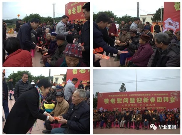 201824日,在新春佳節(jié)即將來(lái)臨之際,廣西華業(yè)投資集團(tuán)與防城港市武威慈善協(xié)會(huì)、水坡廖家祠堂常務(wù)理事會(huì)在灘營(yíng)鄉(xiāng)石合村舉行了“敬老慰問(wèn)暨迎新春團(tuán)拜會(huì)”活動(dòng),人間有溫暖,愛(ài)心顯真情!華業(yè)投資集團(tuán)副總裁廖人興、副總裁龐樹(shù)玉、工會(huì)主席鐘麗霞及集團(tuán)代表參加了此次活動(dòng),讓當(dāng)?shù)厝罕娺^(guò)上了一個(gè)溫暖的冬季,過(guò)一個(gè)幸福的春節(jié)。