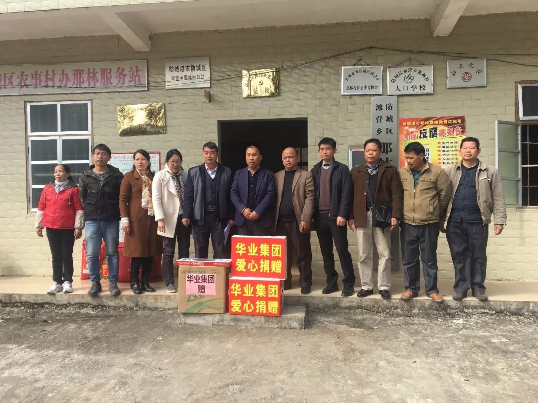 2018年2月6日,廣西華業(yè)集團(tuán)攜手防城區(qū)工商聯(lián)到灘營(yíng)鄉(xiāng)那林村,開(kāi)展貧困村、貧困戶和扶貧村委干部慰問(wèn)活動(dòng)。防城區(qū)工商聯(lián)主席陳如海,區(qū)委統(tǒng)戰(zhàn)部副部長(zhǎng)、工商聯(lián)黨組書(shū)記鐘憲棠和廣西華業(yè)投資集團(tuán)總裁龍其偉、工會(huì)主席鐘麗霞一行參加慰問(wèn)活動(dòng),把溫暖帶到了灘營(yíng)鄉(xiāng)那林村,給村委帶來(lái)嶄新的電腦和打印機(jī),給貧困戶和村兩委干部送上了慰問(wèn)物資和慰問(wèn)金。