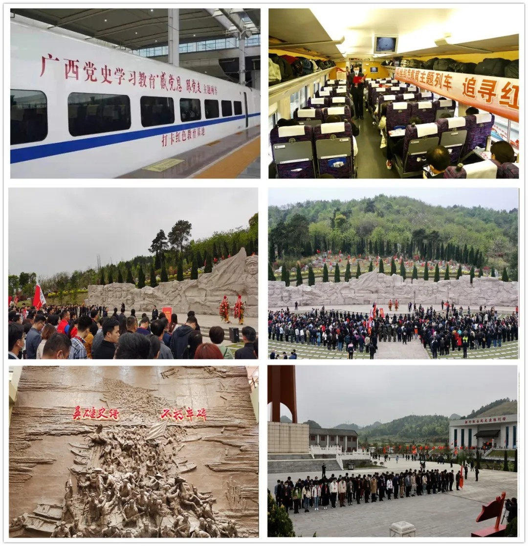 19日上午,全體黨員在南寧東站參加了活動(dòng)啟動(dòng)儀式,隨后搭乘D9688次廣西黨史學(xué)習(xí)教育“感恩黨 跟黨走”主題列車前往桂林湘江戰(zhàn)役紀(jì)念園、酒海井紀(jì)念園,覺山鋪、新圩及光華鋪?zhàn)钃魬?zhàn)舊址等地開展黨史學(xué)習(xí)教育活動(dòng),追尋先輩足跡、重溫紅色記憶、接受精神洗禮。在活動(dòng)現(xiàn)場(chǎng),黨員們通過學(xué)習(xí)中央紅軍長(zhǎng)征的悲壯史詩(shī)——湘江戰(zhàn)役的黨史教育,仿佛看到了那一幕幕前赴后繼、生死存亡的歷史畫面,對(duì)這段悲壯的歷史有了更加深刻的了解和認(rèn)識(shí),并從中汲取和傳承不忘初心、繼續(xù)前進(jìn)的智慧和力量,準(zhǔn)確領(lǐng)會(huì)黨史學(xué)習(xí)教育的重大意義。