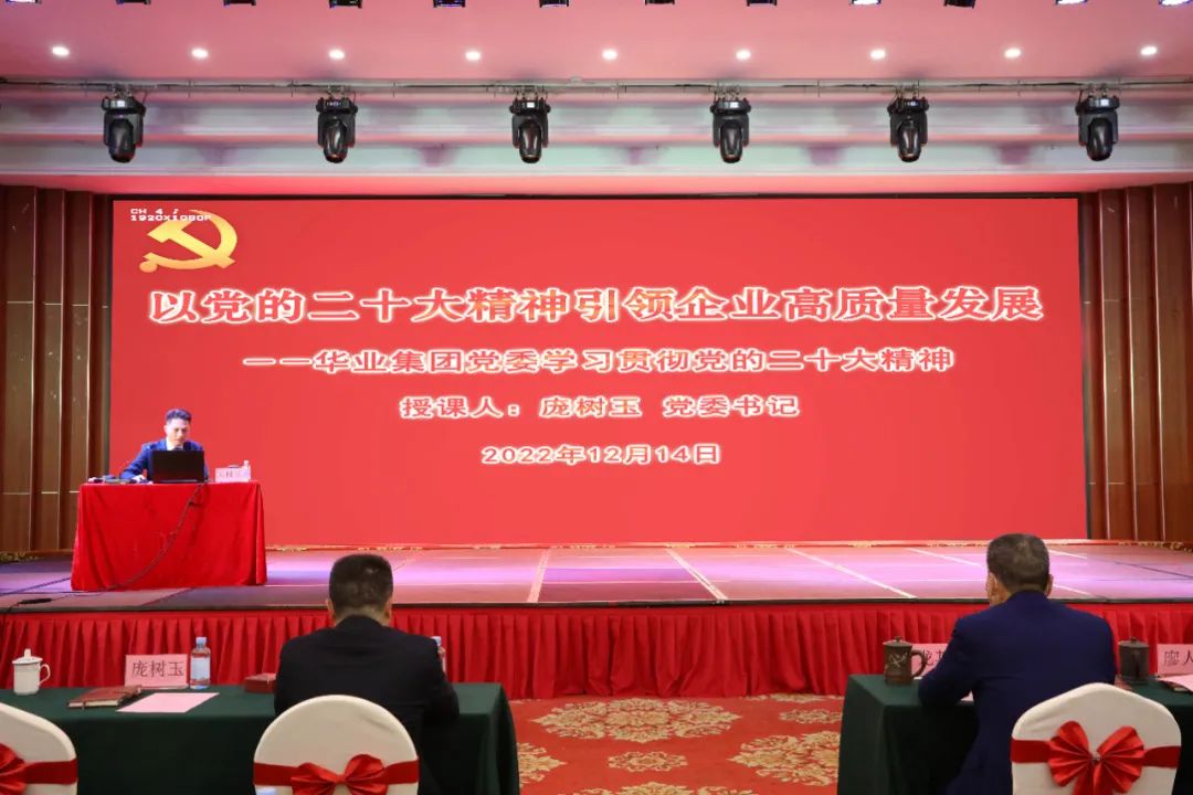 集團(tuán)黨委書記、副總裁龐樹玉作了題為“以黨的二十大精神引領(lǐng)企業(yè)高質(zhì)量發(fā)展”的主題學(xué)習(xí),通過深刻領(lǐng)悟黨的二十大報告中有關(guān)高質(zhì)量發(fā)展的重要精神,以“安全、穩(wěn)定、發(fā)展”六字奠定華業(yè)未來五年發(fā)展主基調(diào),明確在新時代新征程道路上華業(yè)發(fā)展的中心任務(wù),透析如何以黨的二十大精神為引領(lǐng),推動華業(yè)未來高質(zhì)量發(fā)展。