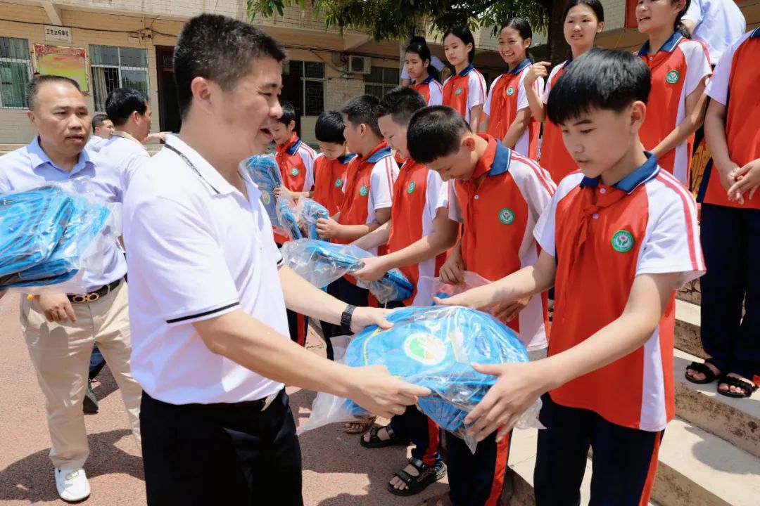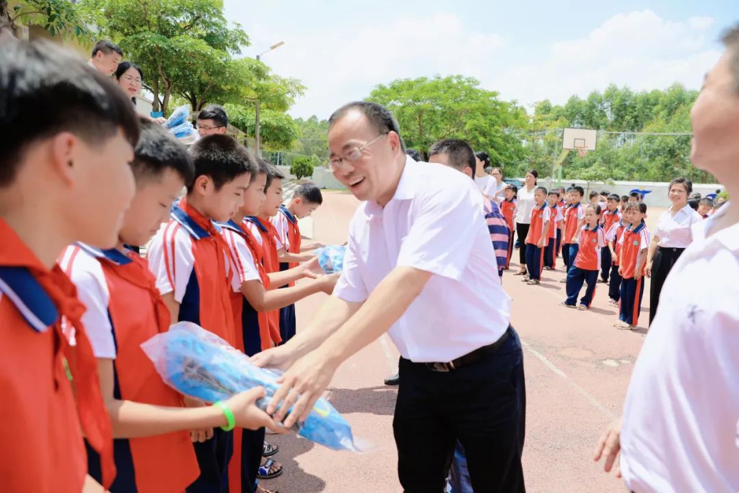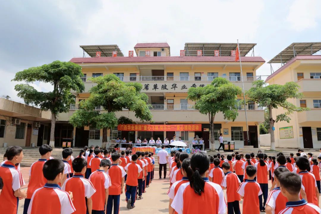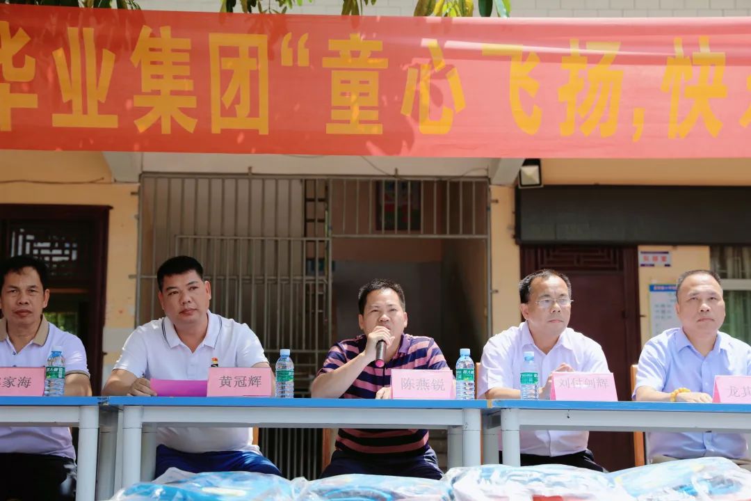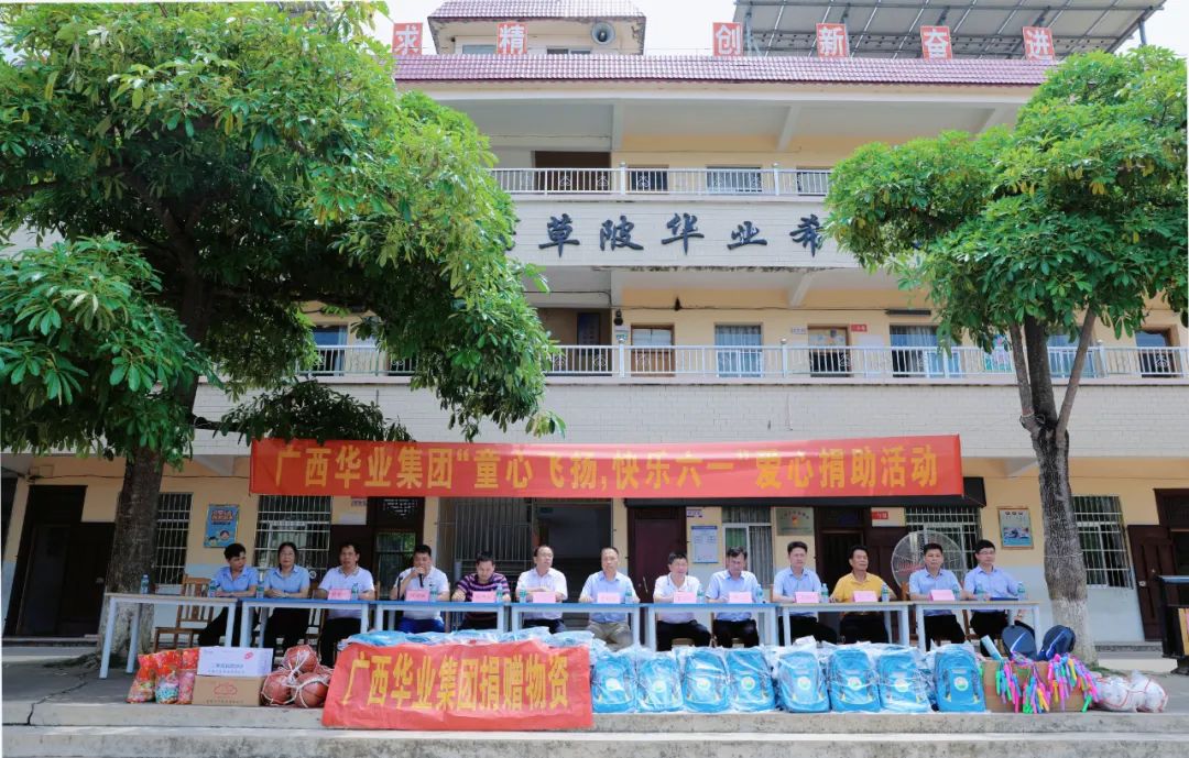 5月29日,廣西華業(yè)投資集團(tuán)創(chuàng)始人、總裁龍其偉,董事長(zhǎng)龍其生率集團(tuán)副總裁廖人興、龐樹玉、熊昭斐,工會(huì)主席鐘麗霞,財(cái)務(wù)總監(jiān)李情及黨委副書記王孟軍等中高層管理人員、職工代表一行16人,驅(qū)車前往廣東廉江市高橋鎮(zhèn)蓆草陂華業(yè)希望小學(xué),舉辦“童心飛揚(yáng),快樂六一”慰問捐贈(zèng)活動(dòng)。廣東廉江市高橋鎮(zhèn)黨委書記劉付劍輝、副鎮(zhèn)長(zhǎng)陳燕銳,學(xué)校領(lǐng)導(dǎo)以及當(dāng)?shù)剜l(xiāng)賢代表出席了活動(dòng)。