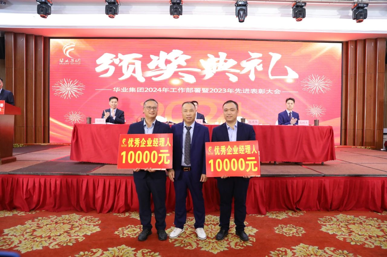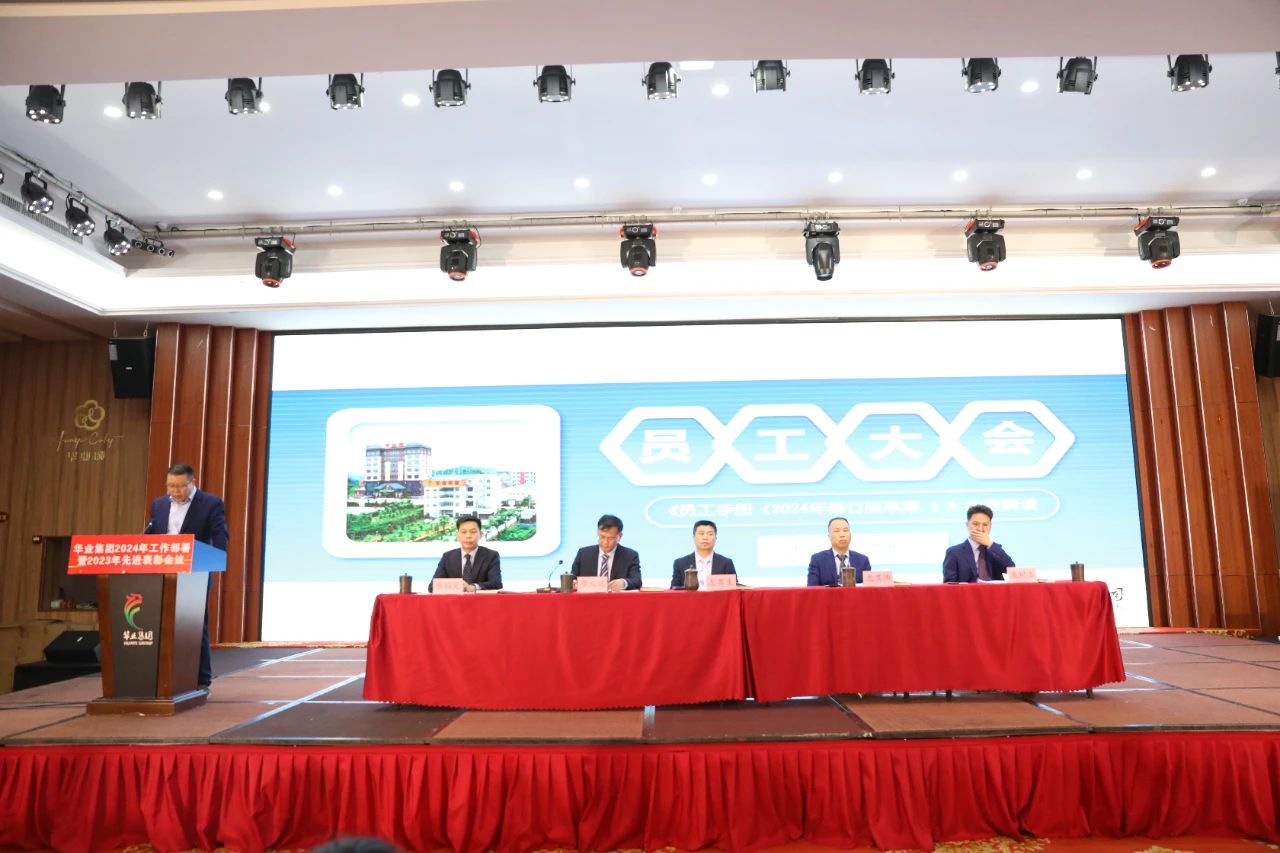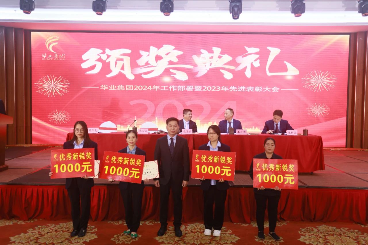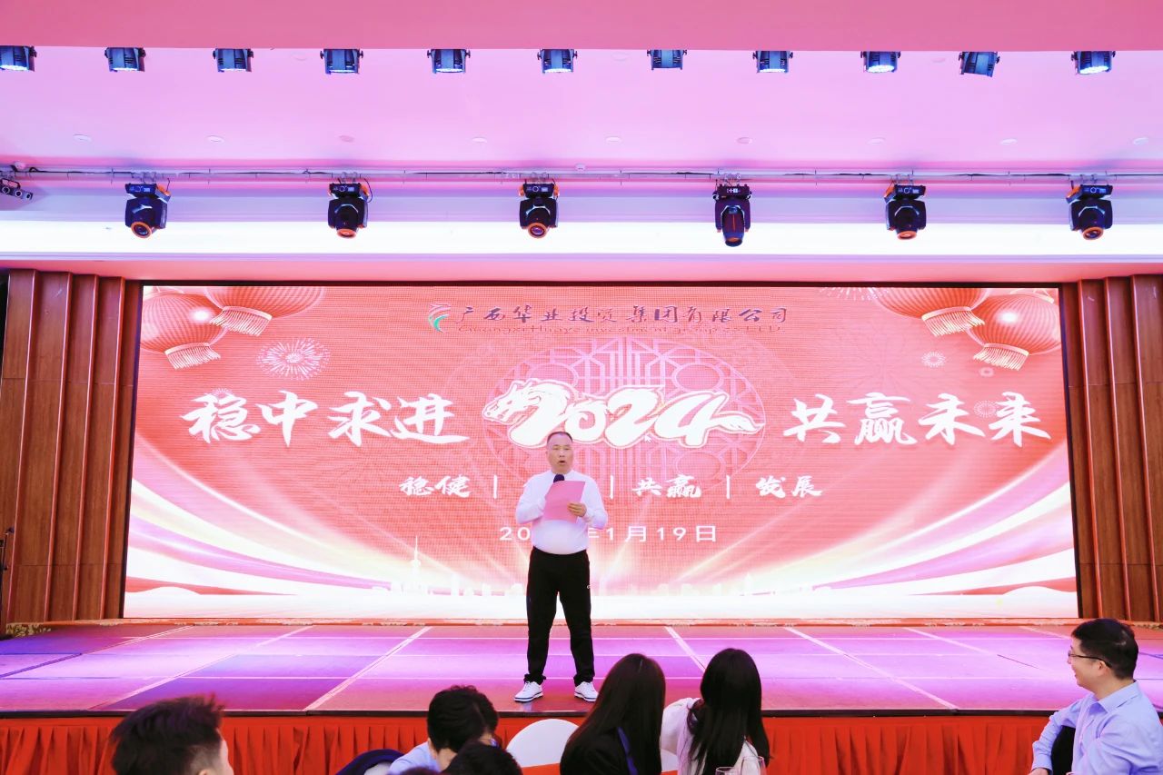 2024年1月19日,廣西華業(yè)投資集團有限公司2024年工作部署暨2023年先進表彰大會在防城港市華業(yè)城圓滿召開。集團創(chuàng)始人總裁龍其偉、董事長龍其生、副總裁廖人興、龐樹玉(黨委書記)、熊昭斐、工會主席鐘麗霞及財務總監(jiān)李情等領導出席會議。會議由集團黨委副書記、副總裁廖人興主持,集團、各子公司及獲獎代表員工共計435人參加會議。