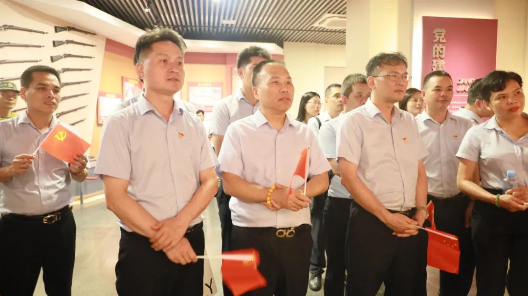 為熱烈慶祝中國共產(chǎn)黨成立102周年,7月1日,華業(yè)集團(tuán)黨委于百色起義紀(jì)念園組織開展“同心向黨慶七一 紅色賡續(xù)促發(fā)展”主題黨日活動,旨在通過追尋紅色足跡,緬懷革命先烈,汲取奮進(jìn)力量,始終聽黨話,感黨恩,跟黨走。集團(tuán)總裁龍其偉,副總裁廖人興、龐樹玉(黨委書記),集團(tuán)黨委、支部班子成員、部分黨員(入黨積極分子)代表共30人參加活動。