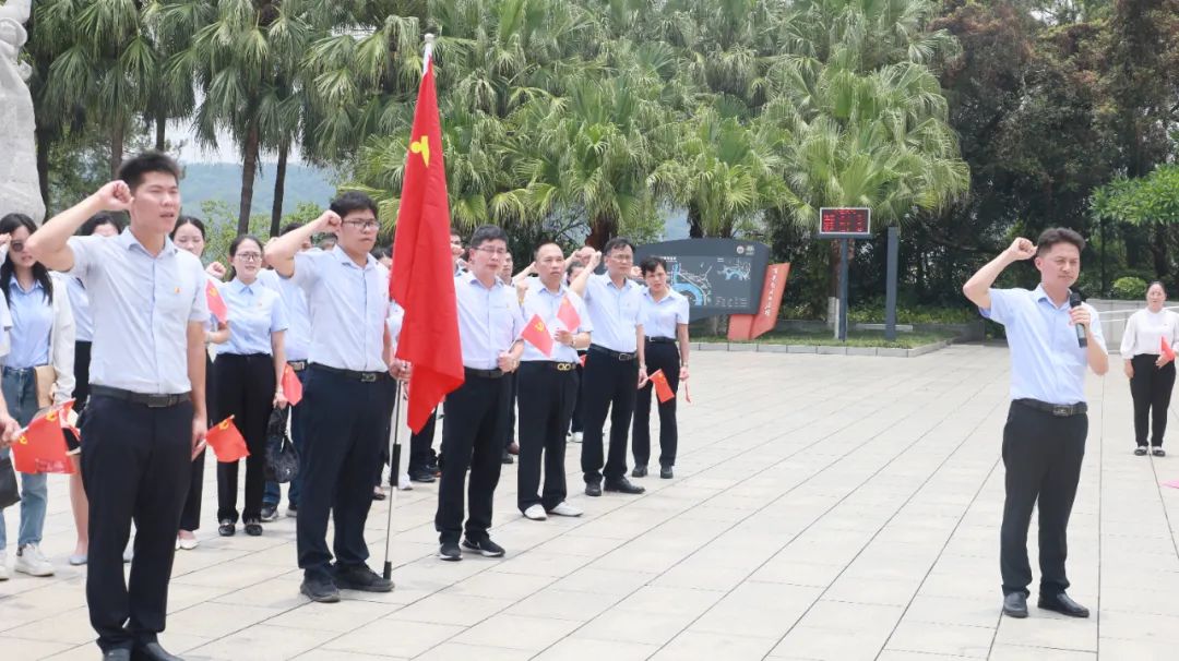 全體人員前往百色起義紀(jì)念碑舉行瞻仰儀式,向革命烈士敬獻(xiàn)花圈,并重溫入黨誓詞,表達(dá)對革命烈士的深情緬懷、崇高敬意和無限感恩之情。