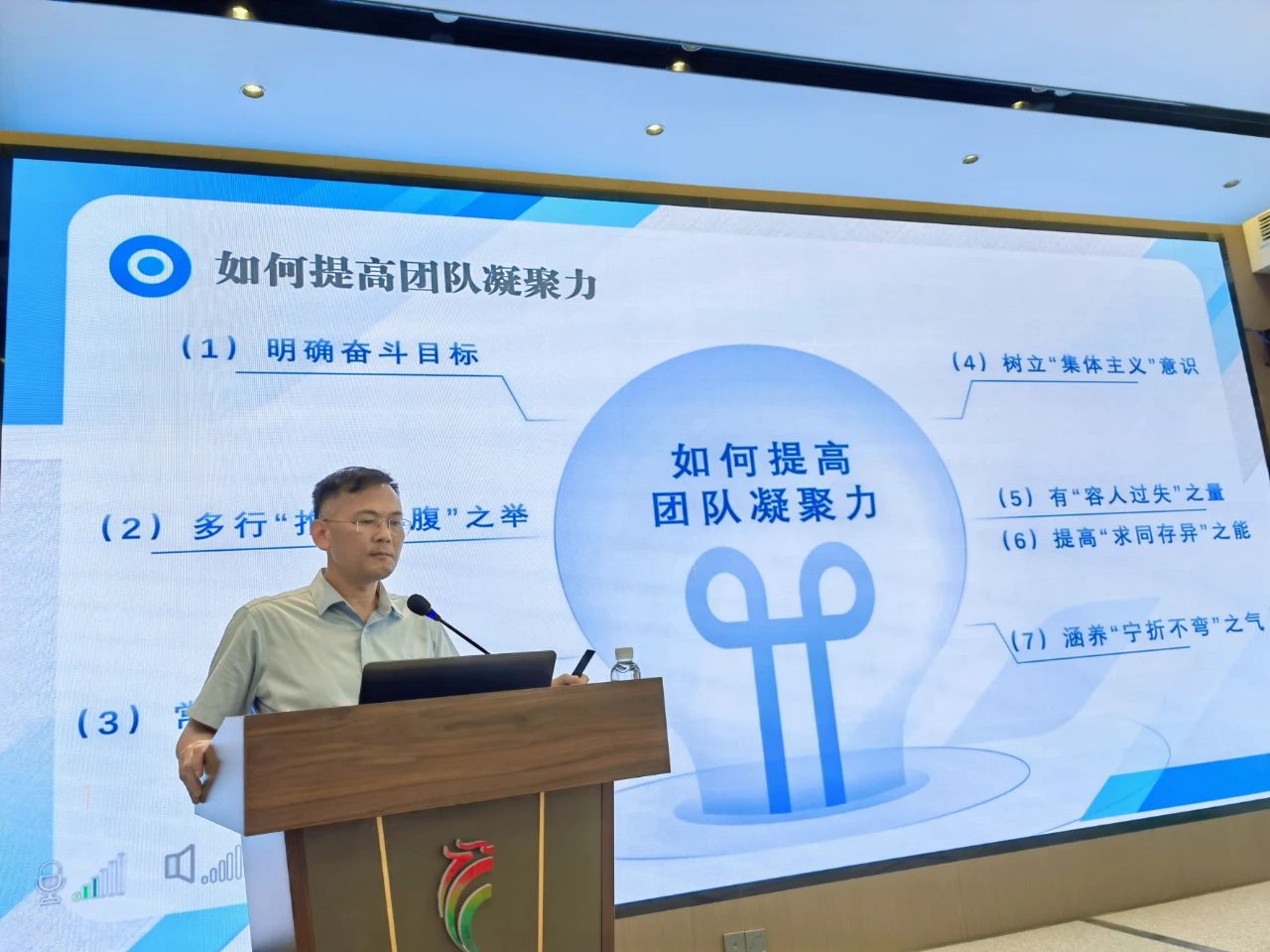 凝心聚力,共譜華章。圍繞“如何學(xué)好團(tuán)結(jié)這門學(xué)問”,廖人興副總裁巧妙以“火鍋底料”比喻團(tuán)隊要素,通過互動環(huán)節(jié)引導(dǎo)員工反思目標(biāo)管理,提出七項具體舉措,現(xiàn)場氣氛熱烈歡迎。