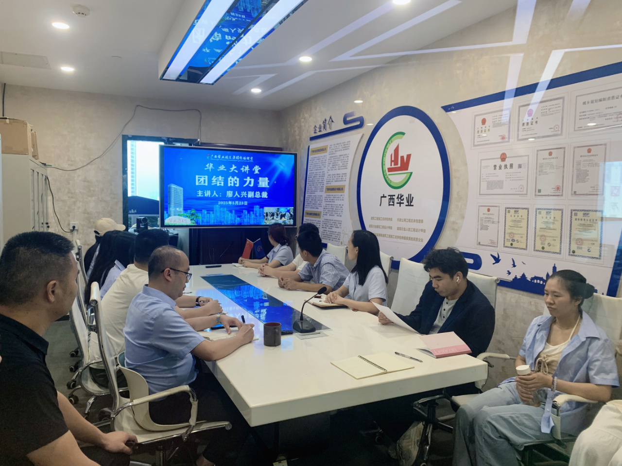 團(tuán)結(jié)是華業(yè)精神的靈魂,團(tuán)結(jié)是華業(yè)文化的基石,團(tuán)結(jié)的力量,在華業(yè)無處不在。廖人興副總裁從華業(yè)集團(tuán)23年的發(fā)展歷程切入,通過回顧企業(yè)從十幾人的小團(tuán)隊成長為廣西建筑行業(yè)龍頭企業(yè)的奮斗史,生動詮釋了“團(tuán)結(jié)”在企業(yè)文化中的核心地位。他提到:“‘人心齊,泰山移’,華業(yè)每一次跨越——從三級資質(zhì)到特級資質(zhì)獲取,從百億合同額突破到抗疫緊急任務(wù)完成,無一不是全體華業(yè)人同心協(xié)力的成果?!迸嘤?xùn)中,廖人興以“藍(lán)灣湖畔項目”“防城港‘小湯山’醫(yī)院建設(shè)”“疫情防控隔離點建設(shè)”等典型案例,展現(xiàn)了華業(yè)團(tuán)隊“召之即來、來之能戰(zhàn)、戰(zhàn)之必勝”的鐵軍精神。