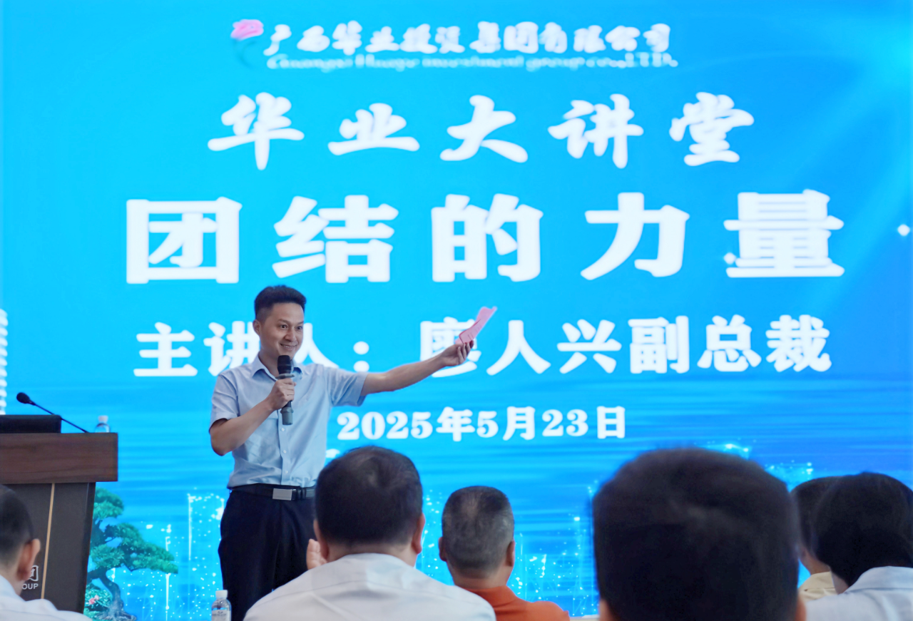 2025年5月23日,華業(yè)集團(tuán)2025年第二期“華業(yè)大講堂”培訓(xùn)在華業(yè)大廈24樓會議室圓滿舉行。集團(tuán)副總裁廖人興以《團(tuán)結(jié)的力量》為題,結(jié)合華業(yè)集團(tuán)發(fā)展歷程與企業(yè)文化,為全體參訓(xùn)人員帶來了一場深刻而富有啟發(fā)性的主題培訓(xùn)。本次活動由集團(tuán)副總裁(黨委書記)龐樹玉主持,集團(tuán)及各子公司中高層管理人員、員工代表共計275人參加,培訓(xùn)設(shè)集團(tuán)主會場以及北部灣、粵港澳、盛萬事、華業(yè)龍輝等多個視頻分會場。