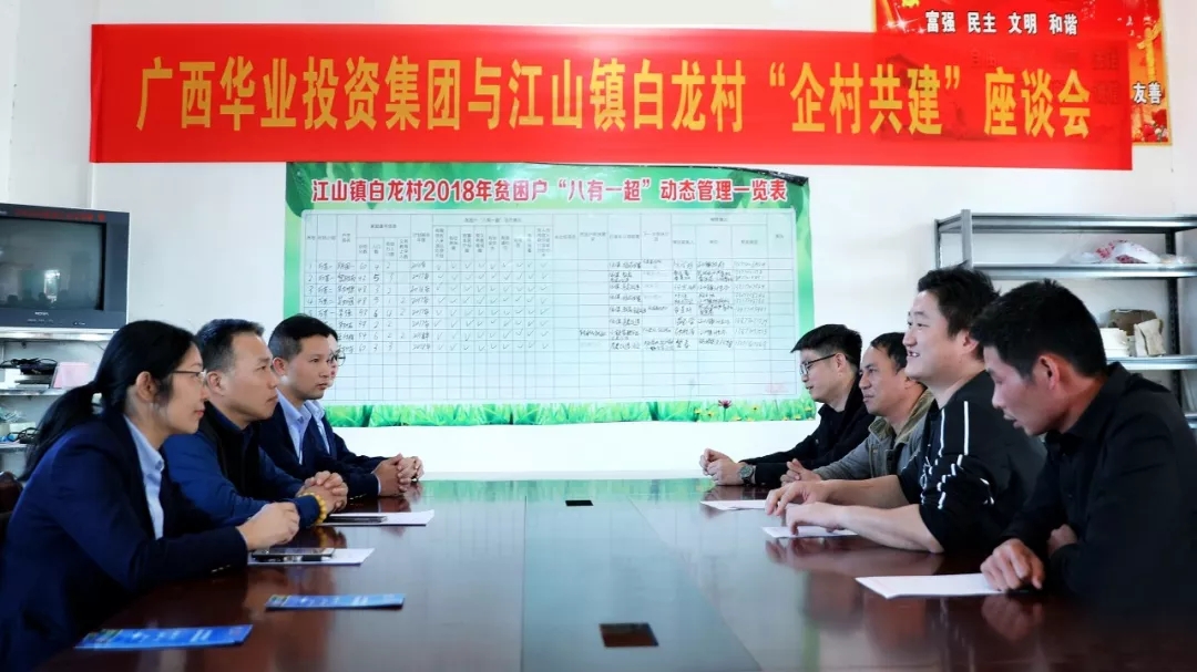 華業(yè)集團總裁龍其偉和白龍村駐村第一書記黃景燦、黨支部書記江朝鋒及部分村委成員,就如何改變防城區(qū)江山鎮(zhèn)白龍村貧困戶現(xiàn)狀,加快脫貧致富步伐,實現(xiàn)白龍村全體村民共同富裕展開了座談交流,龍其偉總裁提出:扶貧不能僅靠捐錢捐物,更重要的是要帶動貧困戶從思想上、產(chǎn)業(yè)開發(fā)上、就業(yè)出路上全方位開展扶貧工作,增強貧困戶自力更生謀發(fā)展的能力,從根源上摘掉貧困帽子,共同推動實現(xiàn)全面建設(shè)小康社會的目標(biāo)。